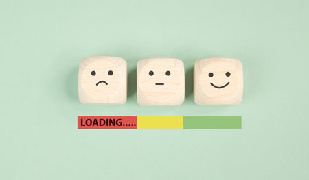 Sad to happy smiling face loading, mental health, attitude, positive and negative mind, influence emotion, support and depression