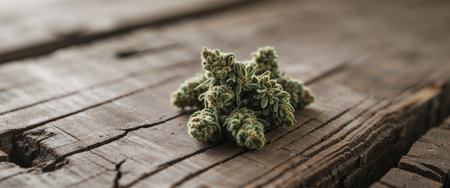 AI Generated. Cannabis Buds Resting On Weathered Wooden Surface