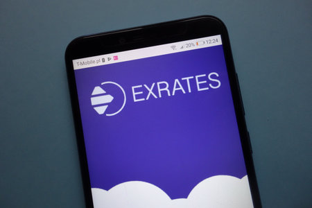 KONSKIE, POLAND - November 03, 2018: Exrates cryptocurrency exchange logo on smartphone