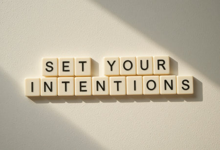 A close-up view of letter tiles spelling Set Your Intentions against a minimalistic background, ideal for promoting motivation, positivity, and personal growth.