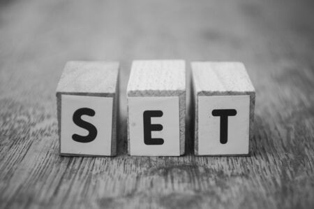 Alphabet letters with text SET YOUR GOAL isolated on a blue background