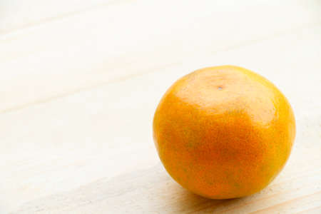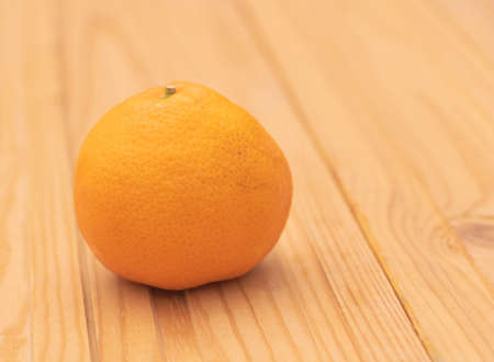 Organic orange fruit on soft wooden background