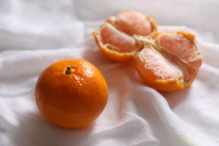 Fresh tangerines on linen napkin