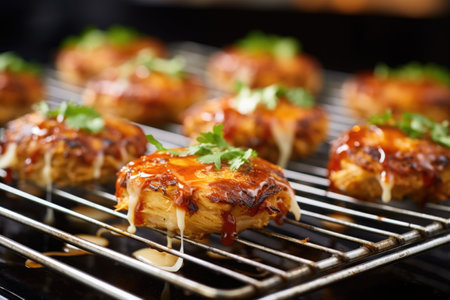 golden brown crab cakes cooling on a wire rack, created with generative ai
