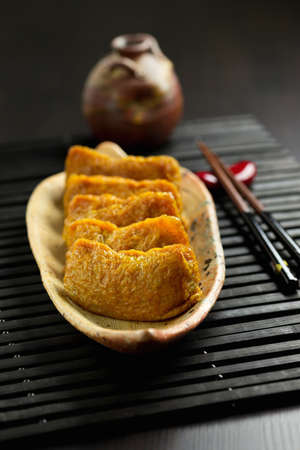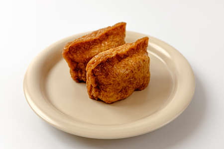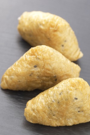 Japanese traditional type of sushi Inari-zushi, made from fried soy tofu wrapper and filled with sushi rice