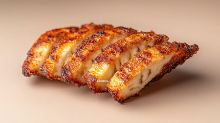 A delicious golden brown crusted calzone on a surface, showcasing its crispy edges and melted cheese filling.