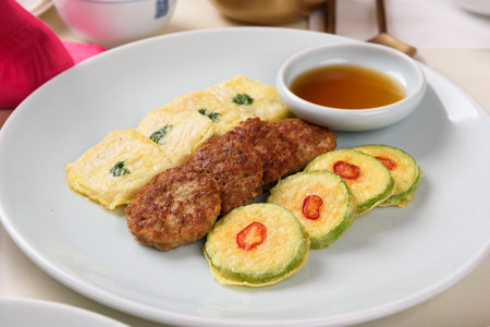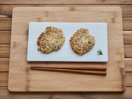 Pancakes made with meat, served with soy sauce
