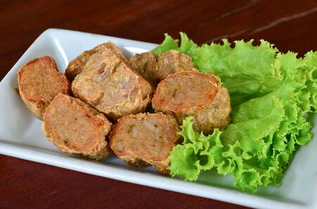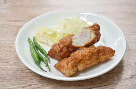 fried Vietnamese pork sausage with sauce