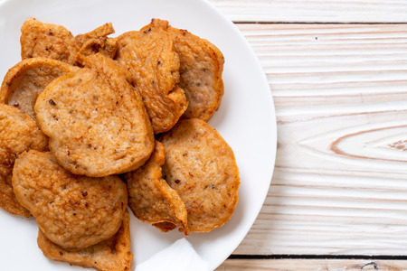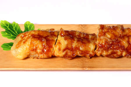 Asian food, fish cake on wooden plate