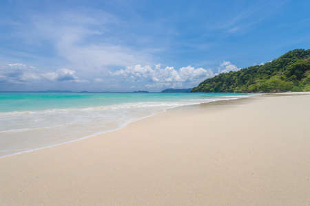 Beach on the tropical island with green water blue sky, koh rok of Thailand