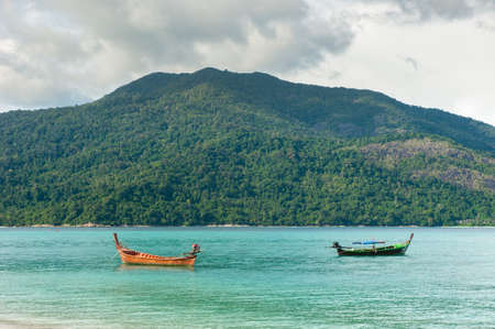 Coral island, koh He, beach and boats in Phuket province, Thailand