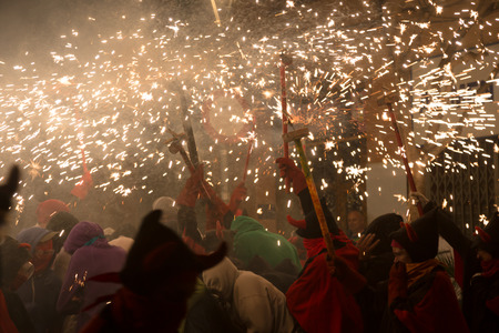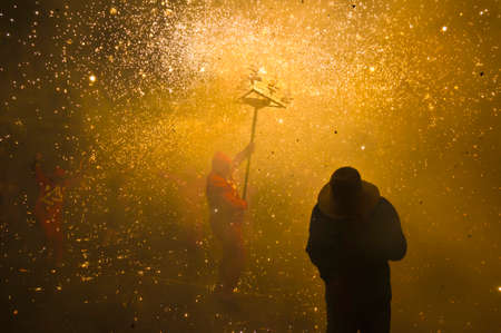 EL VENDRELL, ES - JUL 29: Fireruns at the Festa Major celebrations Jul 29, 2011 in El Vendrell, ES.