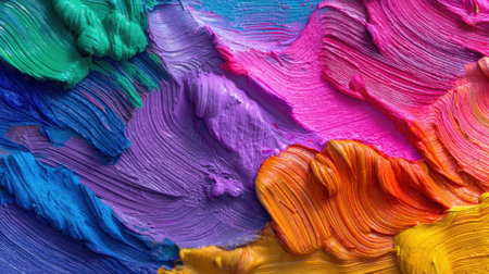 A Colorful brush strokes create vibrant abstract pattern on canvas