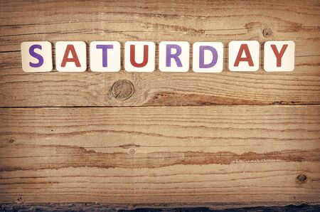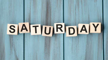 The word Saturday on wooden cubes. Weekday concept.