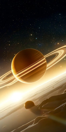 Majestic Planet Saturn Surrounded by Its Stunning Rings, A Celestial Wonder in the Cosmic Realm