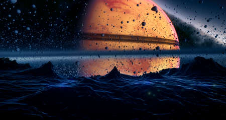 Saturn rings Fantastic planet. Gas giant planet with an asteroid ring around its orbit in space. space science fiction. 3d rendering