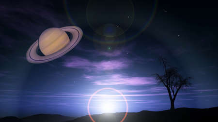 Saturn back night cloud sunset sky on sea. concept Saturn near Earth