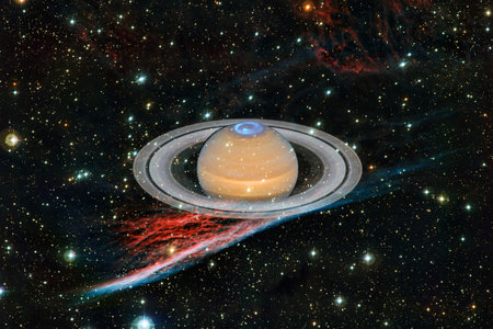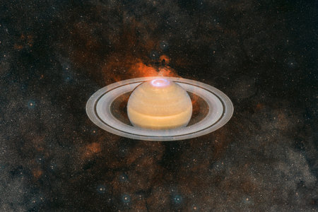 Planet Saturn against dark starry sky background in Solar System, elements of this image furnished by NASA