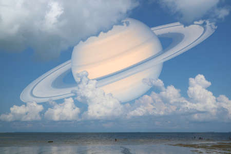 Saturn back cloud sky on sea. concept Saturn near Earth, Elements of this image furnished by NASA