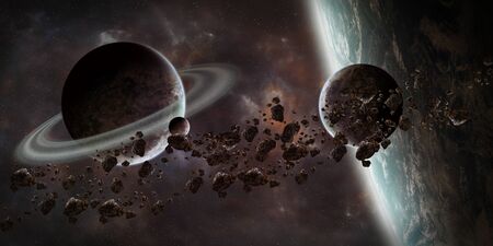 Planets in deep space. Beautiful space landscape. Science fiction.