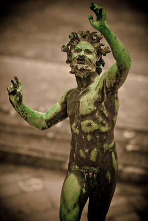 Centaur head close up of Hercules and Nesso centaur statue in Loggia dei Lanzi in Florence, Italy