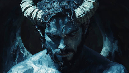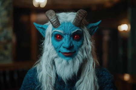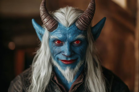 Portrait of a blue-skinned man with horns