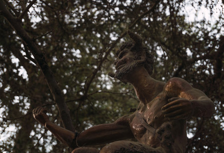 Ica, Peru - December, 27, 2022: Satyr statue in Cachiche Witch Theme Park, Ica Peru
