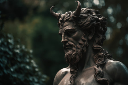 the satyr hybrid, a mythical creature with human-like features and goat-like horns, is majestically captured in this stunning portrait photograph, showcasing its intricate facial expressions and rustic, earthy tones, evoking a sense of ancient greek mythology and fantasy world folklore. ai generated