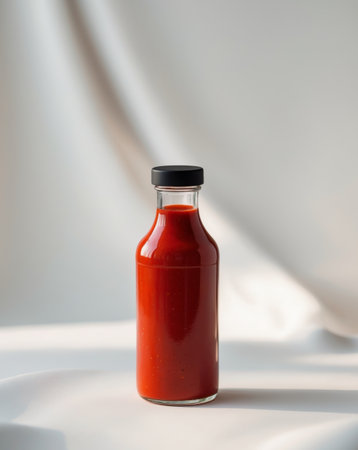 AI Generated. Bottle of red sauce placed on a neutral background with a smooth finish