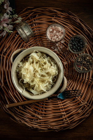 Traditional homemade sauerkraut - fermented cabbage salad
