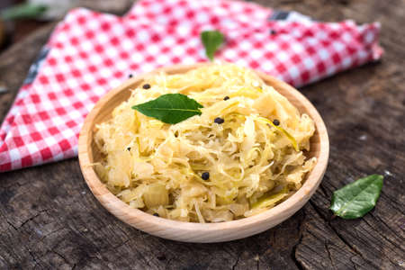sauerkraut on wooden background