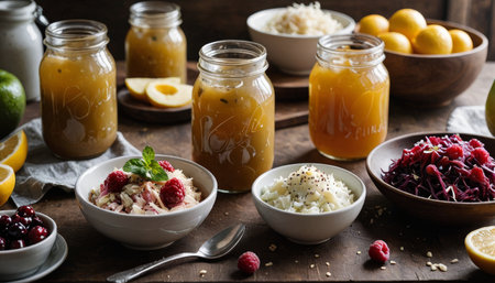 fermented foods market, with a variety of products and flavors available, created with generative ai