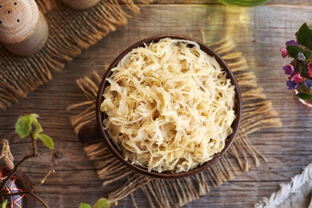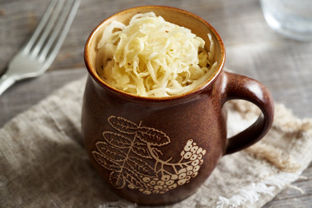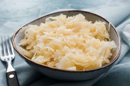 Fermented cabbage in a bowl on a table