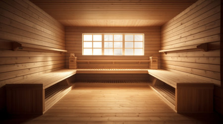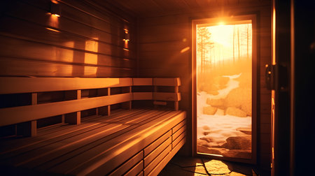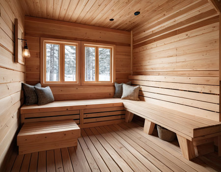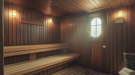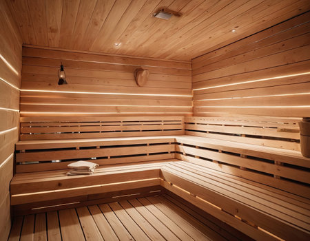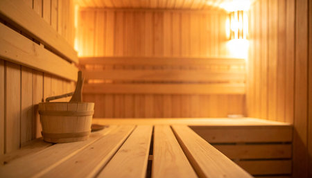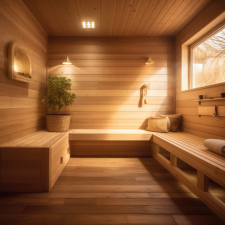 Relaxation and comfort in a wooden sauna interior with warm lighting and a cozy atmosphere