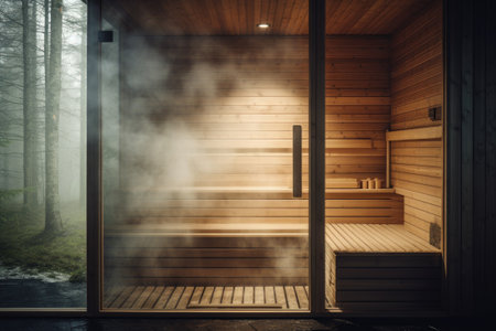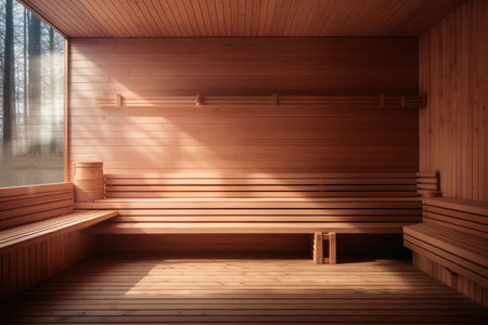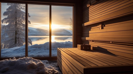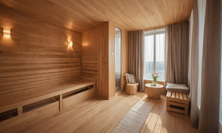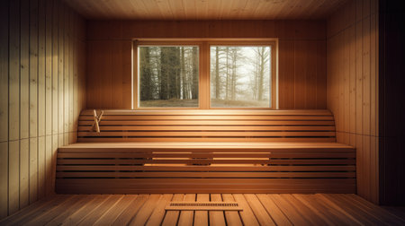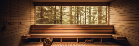 The Warm and Inviting Atmosphere Inside a Sauna, Highlighted by a Panoramic Window