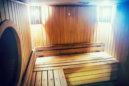 Interior of Finnish sauna, classic wooden sauna. inside sauna