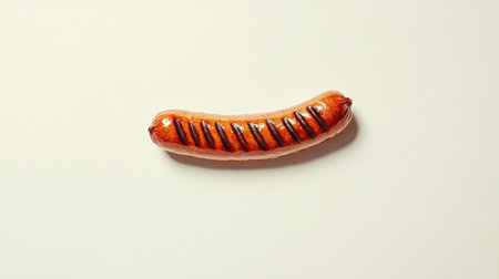 A minimalist composition featuring a perfectly grilled sausage on a clean surface. This image highlights the delicious texture and color, ideal for food-related projects.