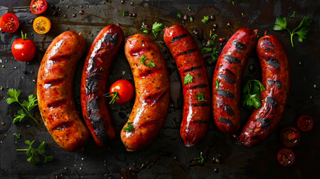 AI Generated. Sausages grilled to perfection with visible grill marks