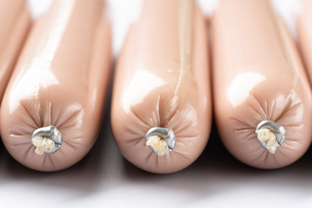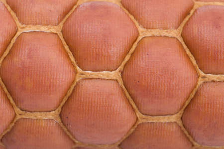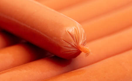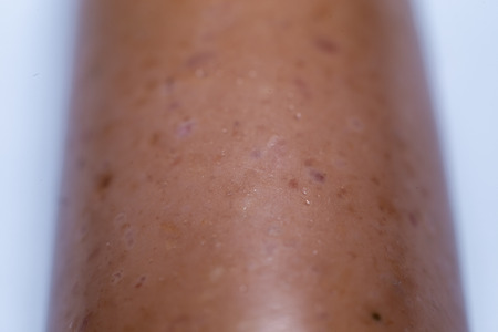 Extreme macro shot of hot dog wiener showing the structure of the surface.