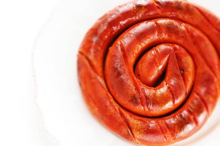 Delicious meat sausage on a white plate
