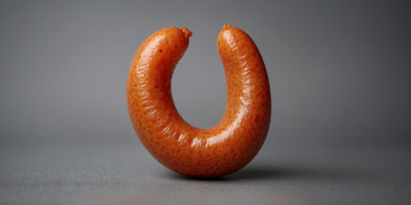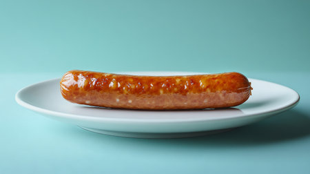 A minimalist composition featuring a perfectly grilled sausage on a clean surface. This image highlights the delicious texture and color, ideal for food-related projects.
