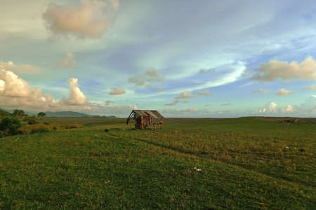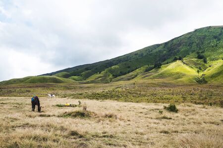 Landscape, Savanna grassland and hills, with horses in Indonesia