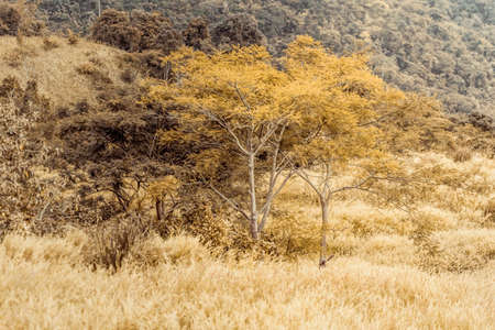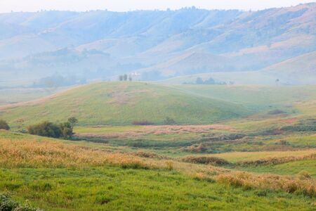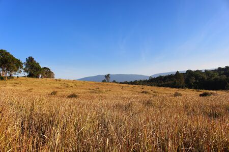 Golden meadow and mountains during sunset. Beautiful natural landscape in the winter time,thailand