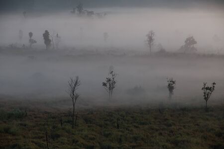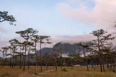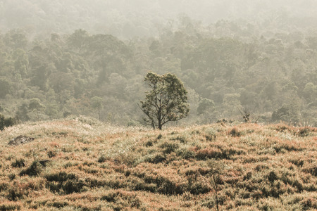 Sunrise at Thung Salaeng Luang national park of Thailand, mountain view with sea of fog and forest