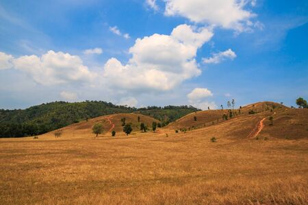 scenary of glass field mountain with blue sky at Ranong Thailand