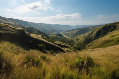 The breathtaking view of the hills and grassy meadows on a sunny day