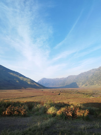 Savanna at Mount Bromo volcanoes in Bromo Tengger Semeru National Park, East Java, Indonesia