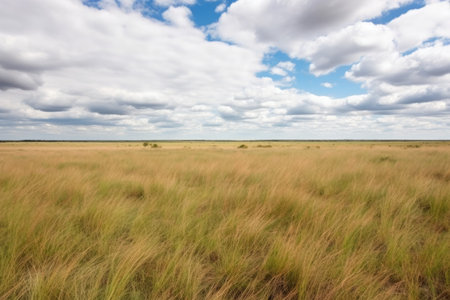 savannah grassland under a cloudy sky, created with generative ai
