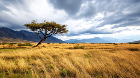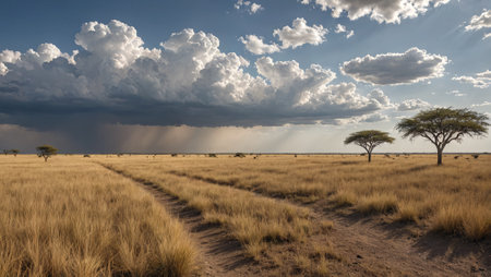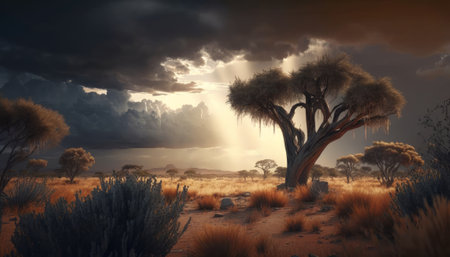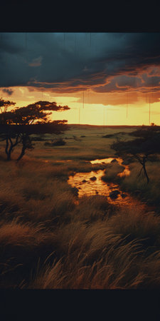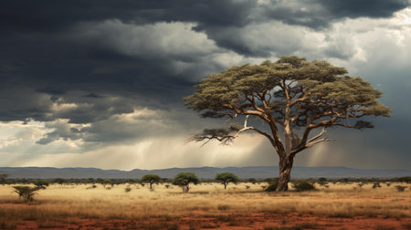 Dramatic African Savanna Landscape under Stormy Skies