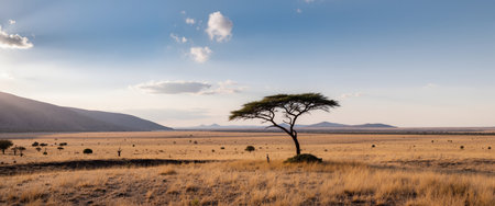 Unique savannah plains landscape with acacia tree in Kenya